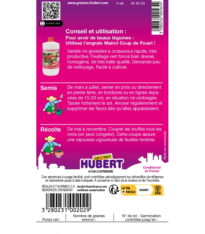- Semer de mars à juillet, directement en pleine terre, en bordures ou en lignes espacées de 15 à 20 cm, en situation mi-ombragée.