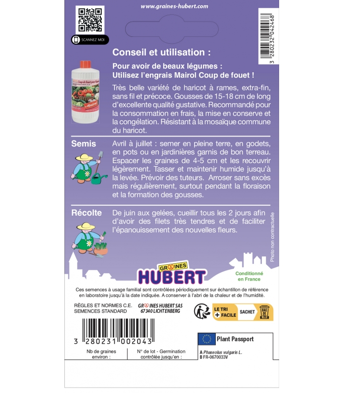 Très belle variété de haricots à rames dont les gousses sont très fines et ressemblent à des haricots nains.